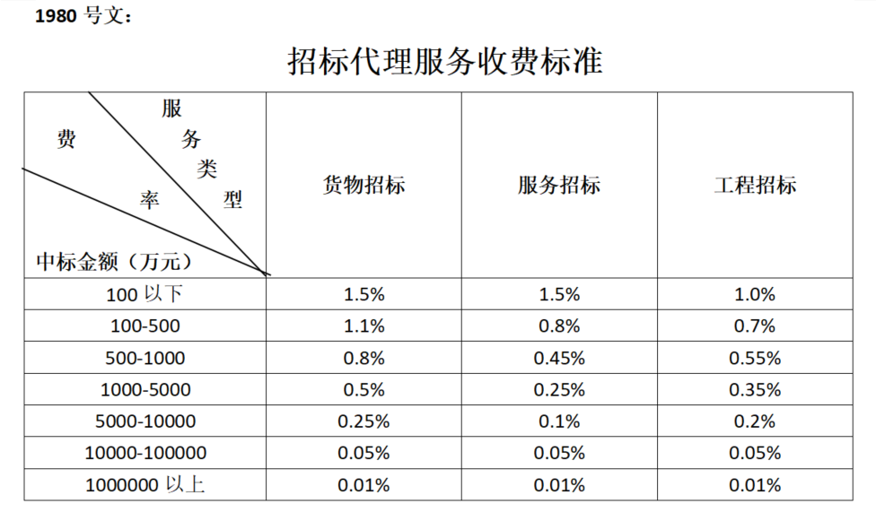 招標(biāo)代理服務(wù)收費(fèi)標(biāo)準(zhǔn)